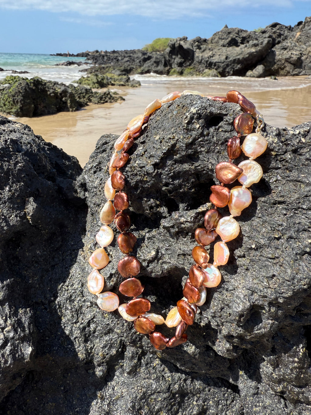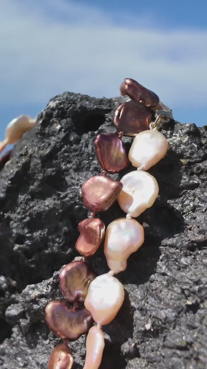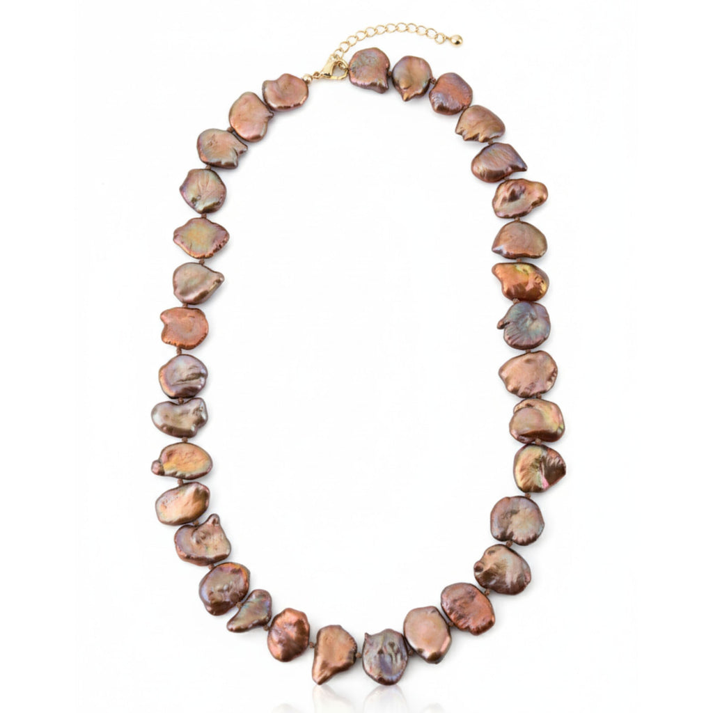 Warm and organic, the Mocha Keshi Pearl Necklace features naturally irregular pearls in rich, earthy tones of bronze, finished with a 14k gold-filled clasp and 2" extension. Handcrafted for effortless elegance, this necklace brings a soft, luminous touch to any look. Handcrafted with care, this necklace is perfect for adding a touch of warmth and individuality to any look.