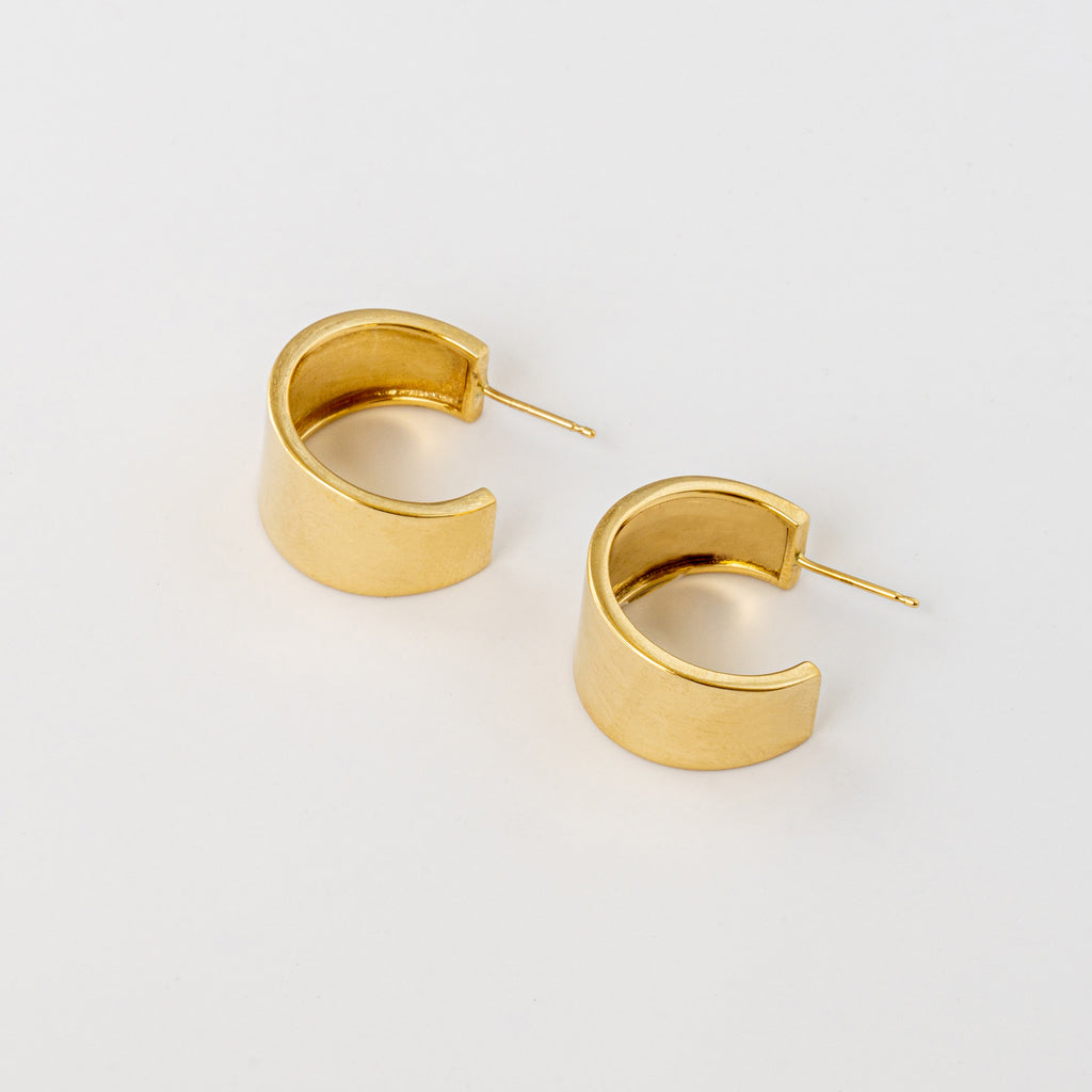14k solid gold hoops handcrafted in Los Angeles using recycled gold.