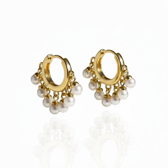 Delicate yet durable, these mini pearl huggie hoops are designed for everyday elegance. Featuring luminous pearls set on waterproof, hypoallergenic 18k gold plated stainless steel with PVD plating, they’re made to last without tarnishing. Lightweight and timeless, they’re the perfect hoops to wear solo or layered with your favorite earring.