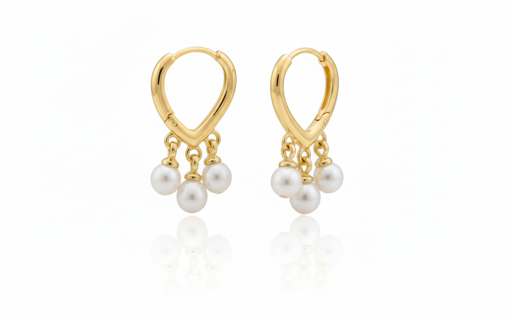 A modern twist on timeless elegance. These gold-plated hoops feature three luminous pearls that gently sway with every movement, creating a soft, radiant glow. Lightweight and versatile, they’re perfect for elevating your everyday look or adding a touch of sophistication to an evening out.