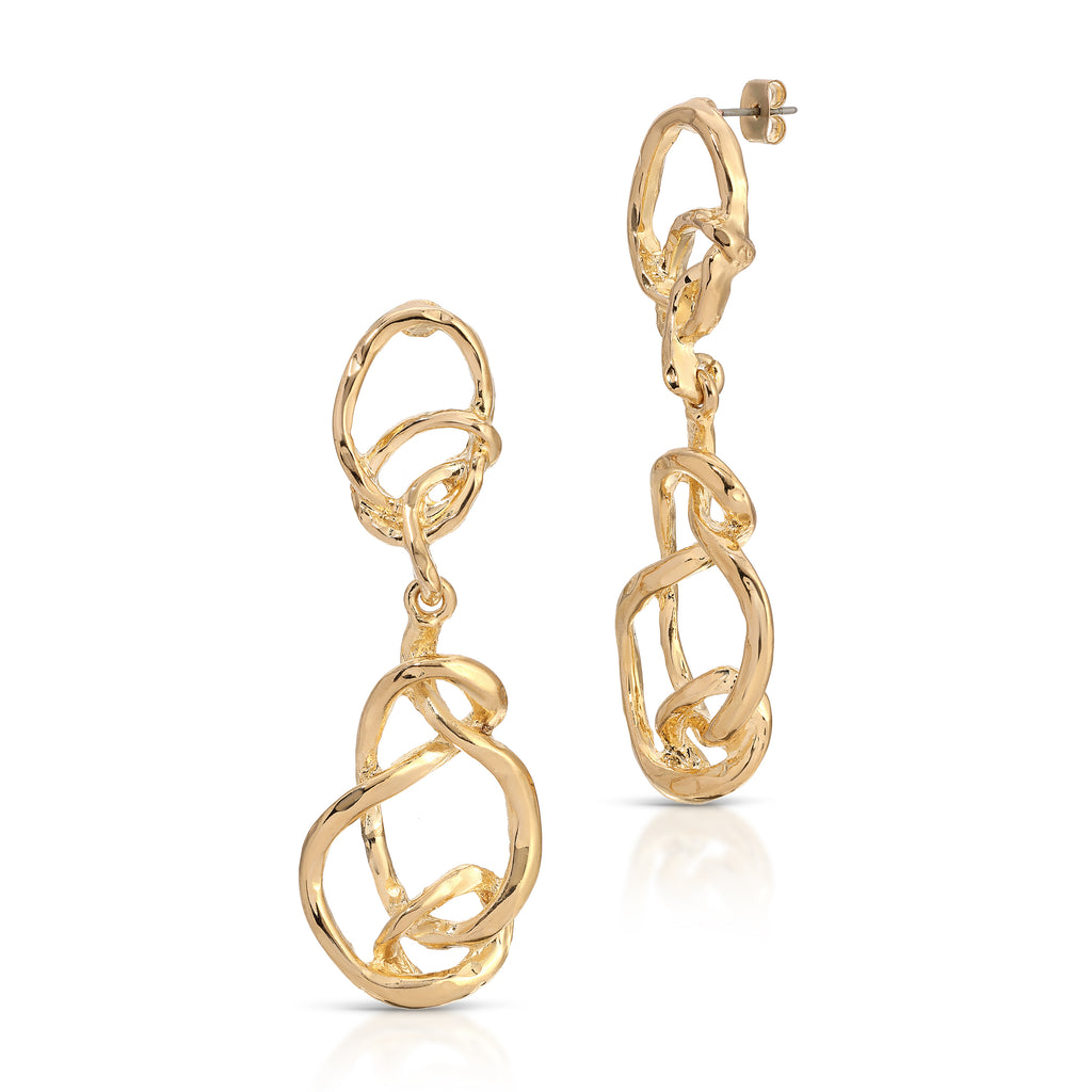 These striking serpentine statement earrings are crafted from durable, tarnish resistant, stainless steel and plated in luxurious 18k gold, offering both elegance and strength. Their bold, snake-like design creates a sleek and sophisticated look, perfect for adding a touch of drama to any outfit. Lightweight yet eye-catching, these earrings are a standout accessory for day or night.