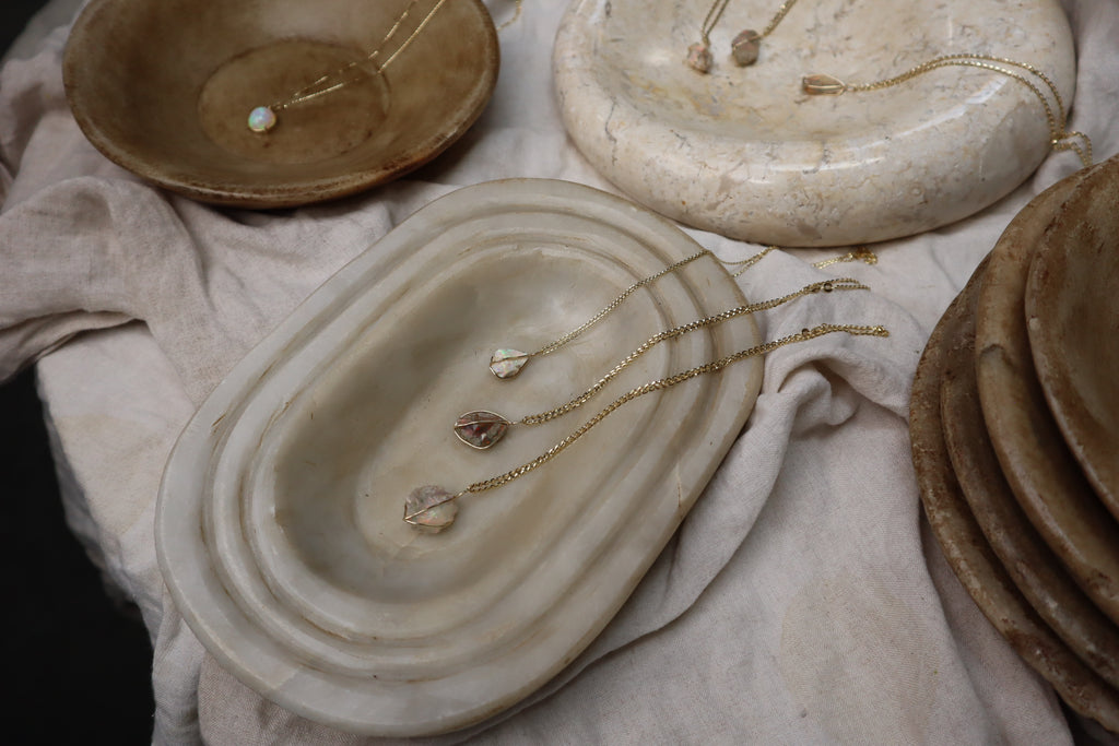 Elevate your jewelry storage with this exquisite oval marble dish, handcrafted by skilled artisans in India. Made from natural marble, this dish showcases smooth, polished surfaces with subtle, unique veining that adds a luxurious touch to any space. Its elegant oval shape is the perfect size for holding rings, earrings, and other small accessories, making it both a functional and stylish addition to your vanity or bedside table. Ideal for those who appreciate fine craftsmanship and timeless design, this marble dish brings a sense of refined beauty and sophistication to your jewelry collection.