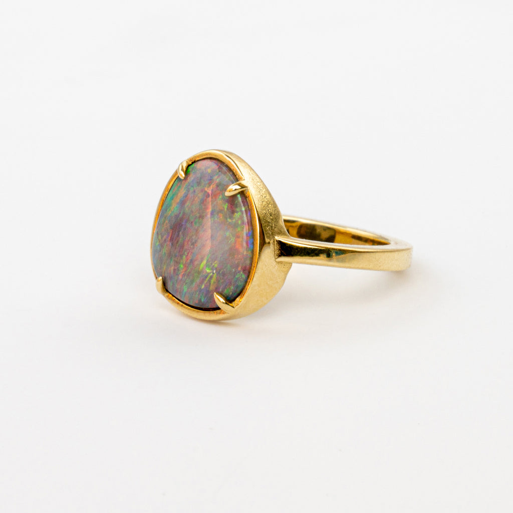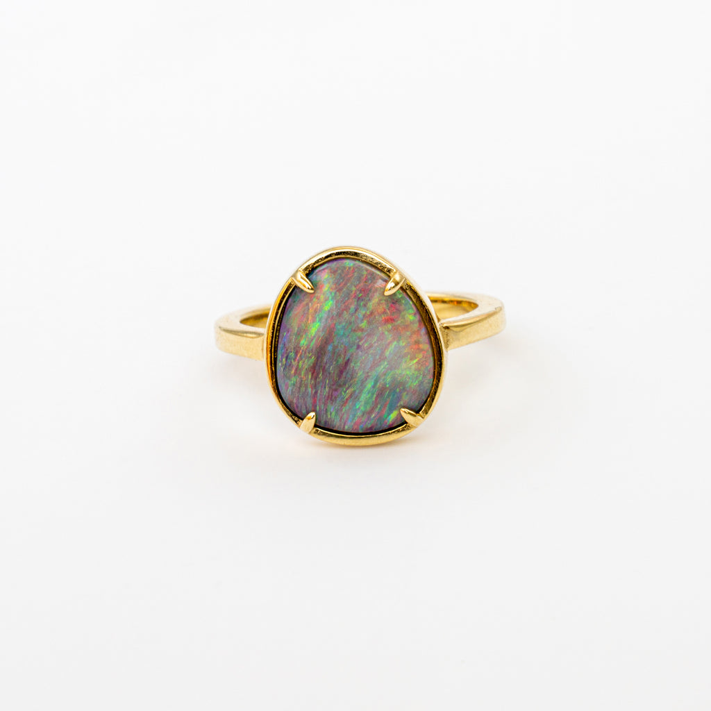 14k solid gold with a rare black opal from Lightning Ridge, Australia in size 6.
