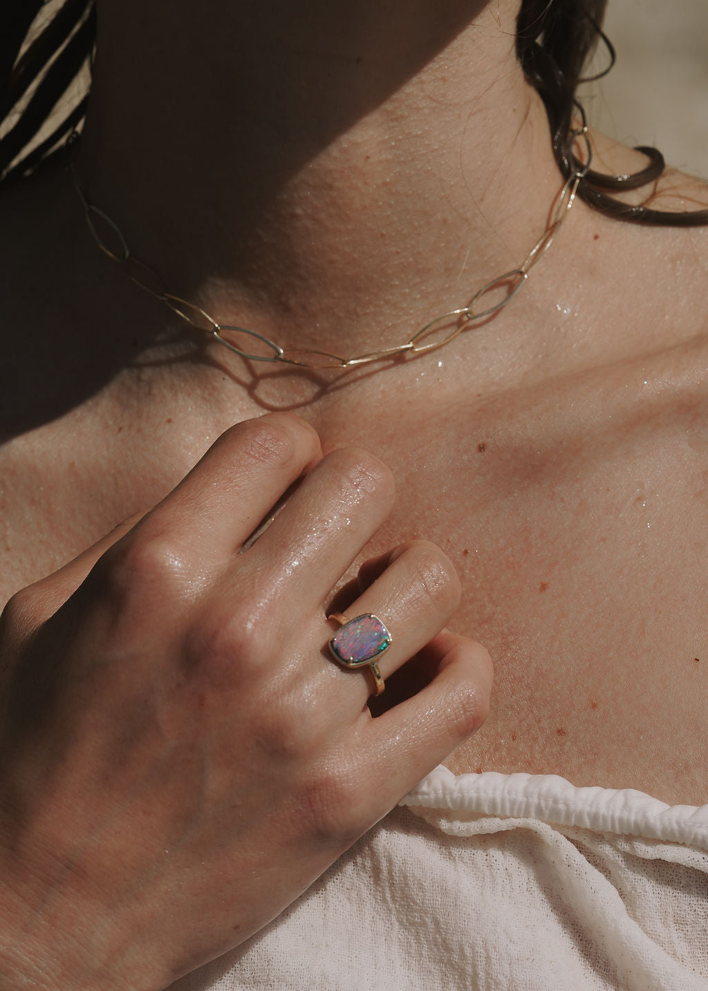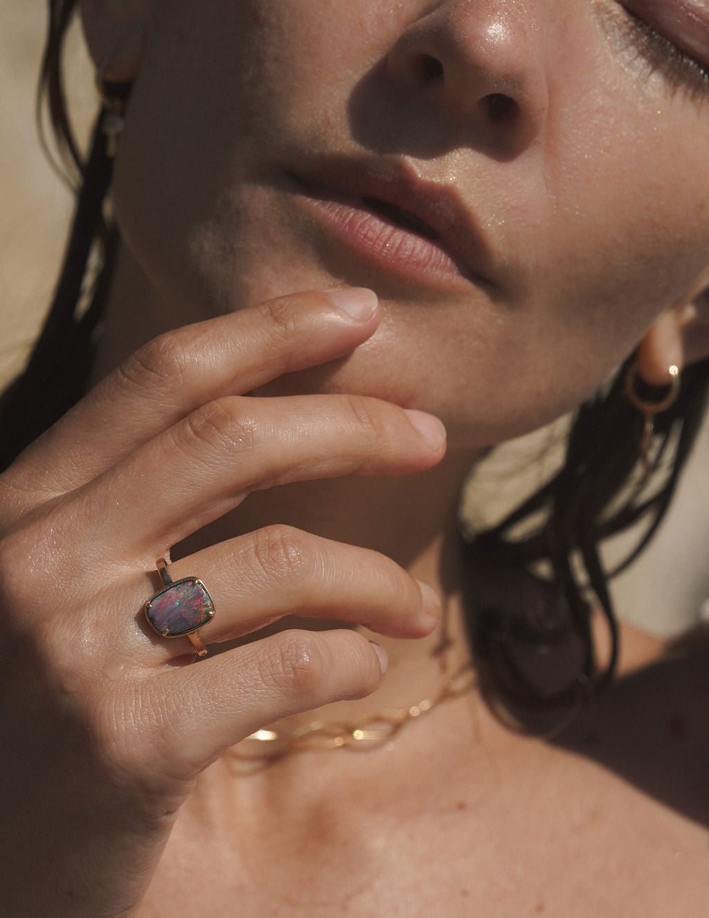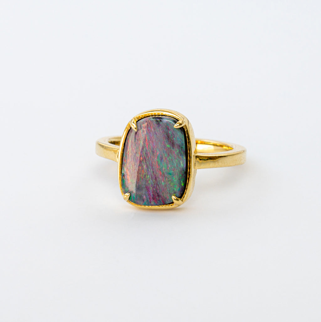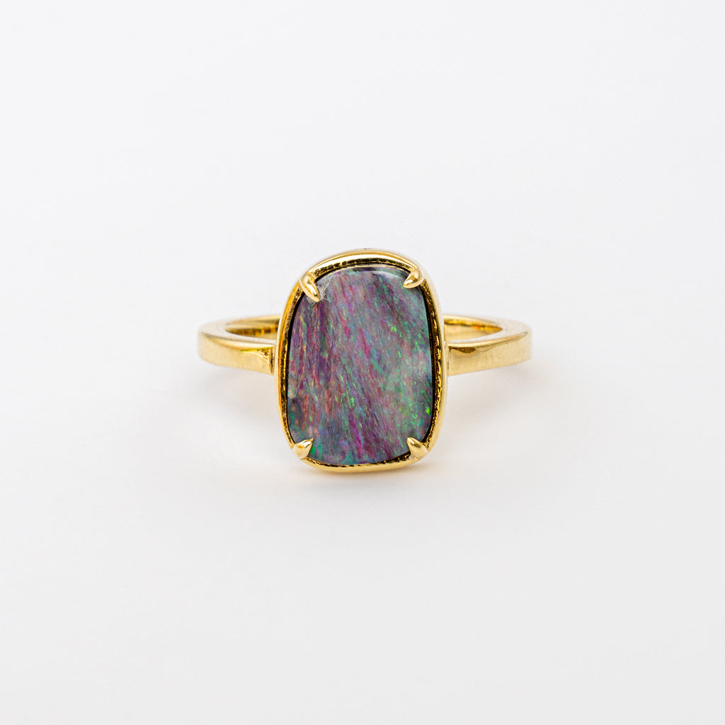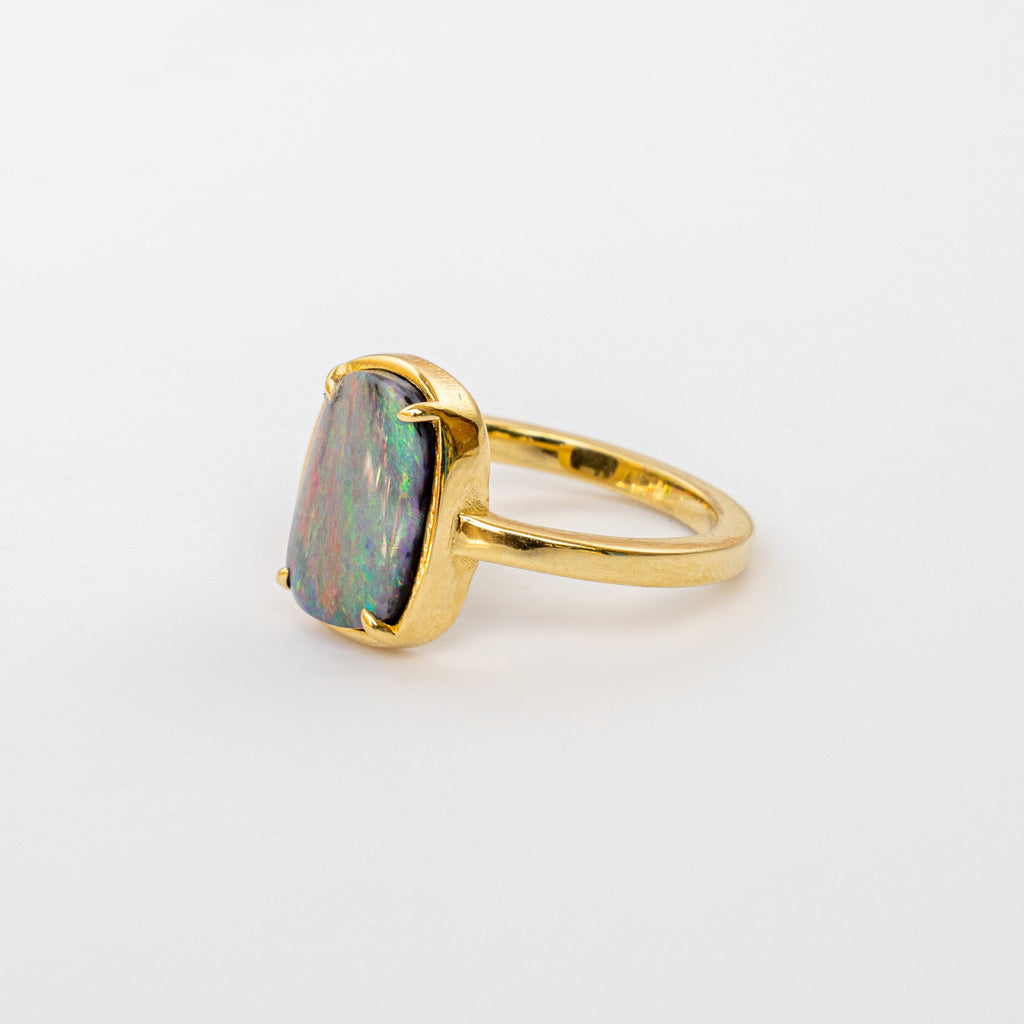 14k solid gold with a rare black opal from Lightning Ridge, Australia in size 6.
