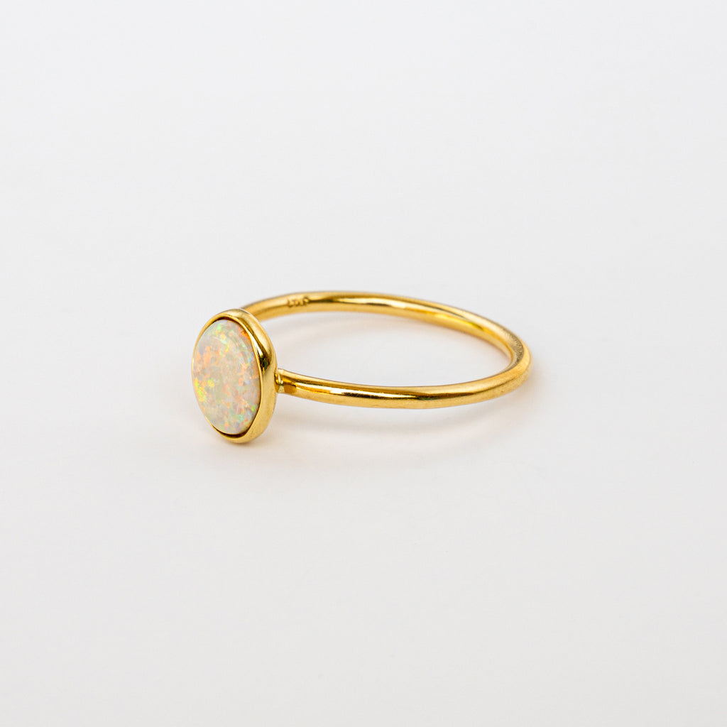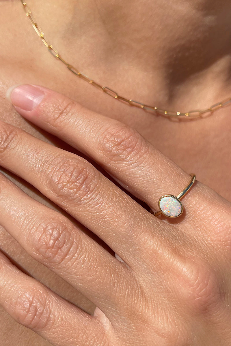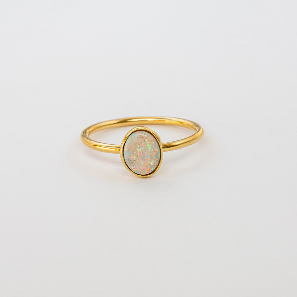 14k solid gold with an opal from Lightning Ridge, Australia in size 6.