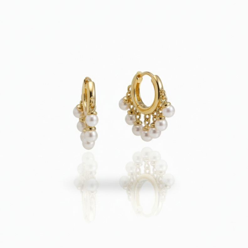 Delicate yet durable, these mini pearl huggie hoops are designed for everyday elegance. Featuring luminous pearls set on waterproof, hypoallergenic 18k gold plated stainless steel with PVD plating, they’re made to last without tarnishing. Lightweight and timeless, they’re the perfect hoops to wear solo or layered with your favorite earring.